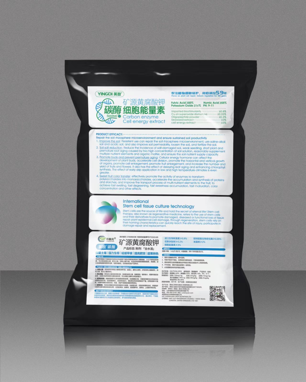 本品采用国际干细胞组织培养技术和喷雾干燥技术提纯的多肽矿源黄腐酸、小分子碳等活性物质,可以有效修复土壤,肥沃土壤,改善土壤PH值。本品还特别复配细胞能量素、海藻精、进口生物刺激素等营养元素,有肥效翻倍,功效更突出的产品特点。